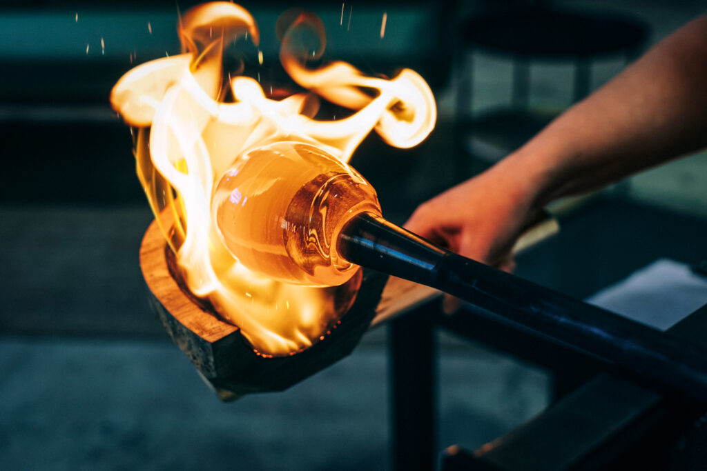 Glassblåser Heidi Skofsrud i Studio Sirkel former hvert produkt for hånd. Glassmassen holder over 1100 grader og har konsistens som tykk honning. Tidligere har Studio Sirkel blant annet hatt samarbeid med en rekke Michelin-restauranter, men nå ønsket glassverkstedet å prøve noe nytt.