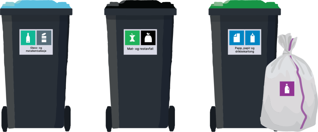 Uansett om du bruker avfallsbrønn, avfallssug eller beholdere på hjul, skal avfallet kildesorteres på samme måte. Beholder / avfallsbrønn med feilsortert avfall kan risikere å ikke bli tømt.